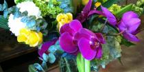 Phalaenopsis, Lilies, Eucalyptus, Larkspur