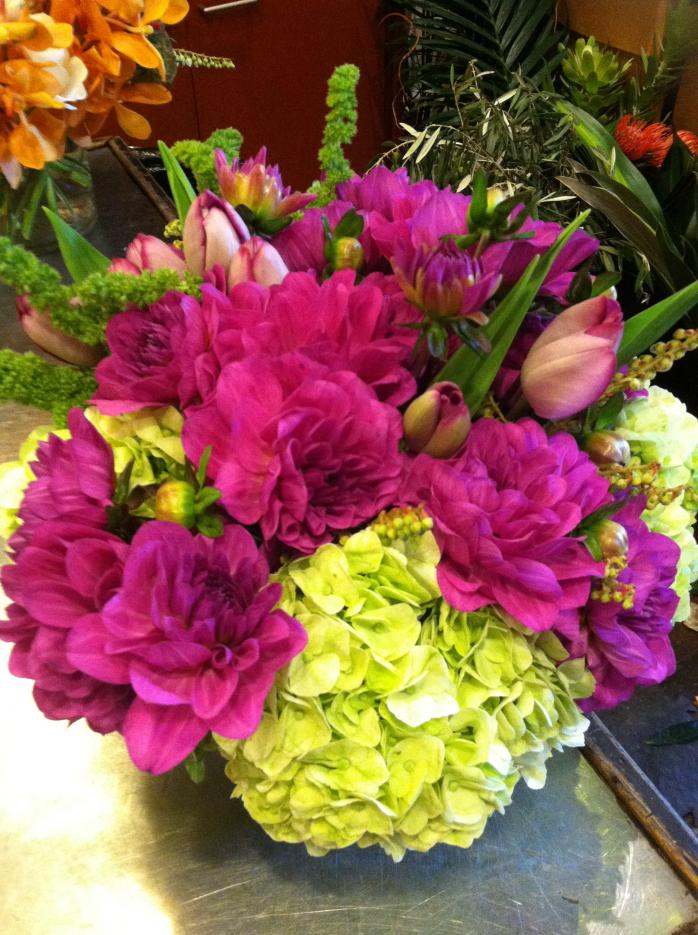 Dahlias, Tulips, Hydrangea