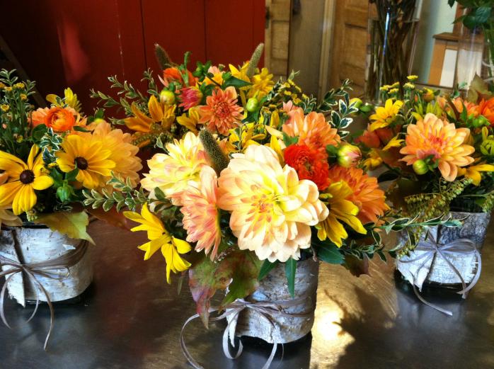 Fall mix feat. Dahlias, Birch & Raffia wrap