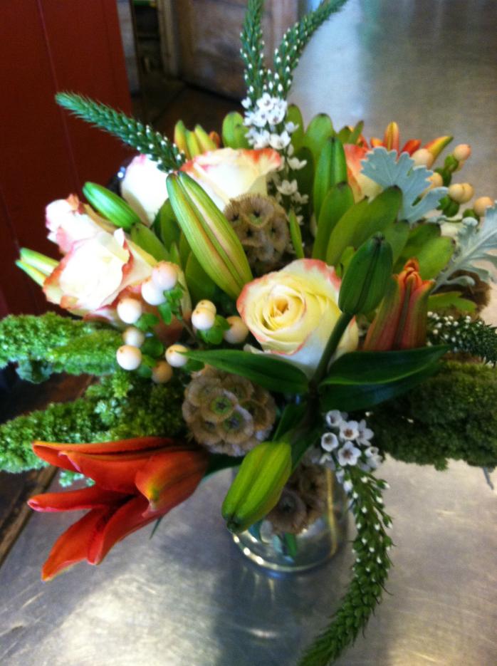Roses, Ilex, Lilies, Scbiosa Pods