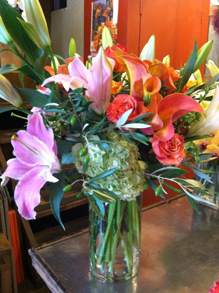 Lilies, Calla Lilies, Hydrangea, Olive